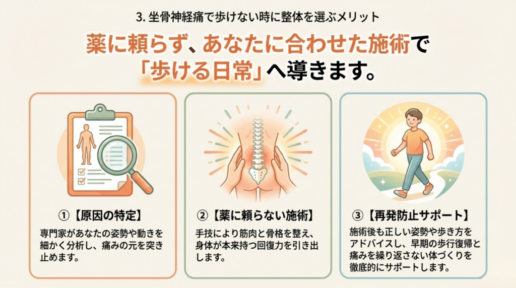 3. 坐骨神経痛で歩けない時に整体を選ぶメリット