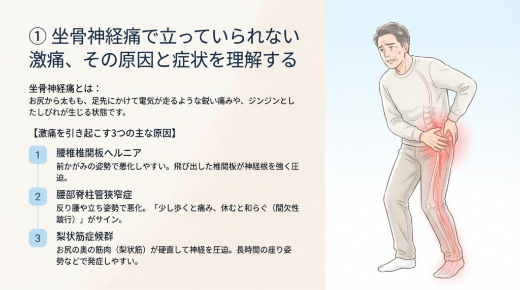 1. 坐骨神経痛で立っていられない激痛、その原因と症状を理解する